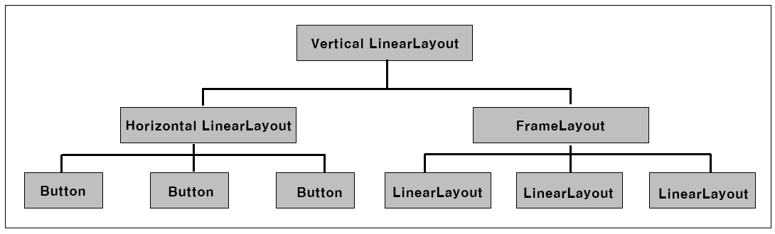FrameLayout 상에서 여러 뷰(View)가 중첩으로 배치되어 있을 때 전면에 보이는 뷰(View)가 있습니다. 이러한 전면에 보이는 뷰(View)를 소스 상에서 유동적으로 변경되도록 구현해보는 예제를 살펴보겠습니다. 예제는 Button 3개를 구현하고 각 Button을 Click 하면 FrameLayout 전면에 나오는 뷰(View)가 변경되도록 하는 예제입니다.