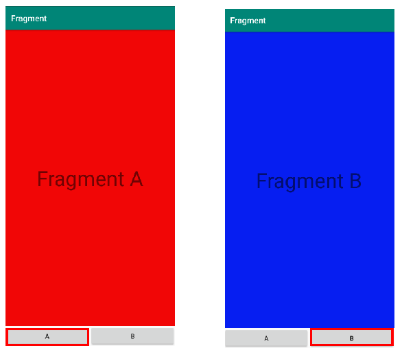 A Fragment와 B Fragment 두 개를 정의하고 MainActivity 안에 포함시킵니다. 두 프래그먼트는 버튼 클릭에 의해 액티비티 실행 중 동적으로 교체되도록 구현할 것입니다.