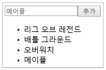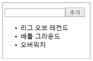 데이터를 추가해보도록 하겠습니다. gameList에 새로운 game을 추가할 수 있도록 input 요소와 Button 요소를 추가하고 이벤트를 등록해보도록 하겠습니다.