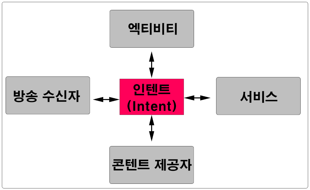 Lkt_Programmer 2019. 5. 1. 15:51안드로이드 4대 구성요소(Component)는 엑티비티(Activity), 서비스(Service), 콘텐트 제공자(Content Provider), 방송수신자(Brodcaster Receiver)로 이루어져 있습니다. 각각의 구성요소(Component)는 독립된 형태로 존재하며 각자가 고유의 기능을 수행하며 중간에 인텐트(intent)를 통해 상호작용을 합니다. 이번 포스팅에서는 4대 구성요소의 전체적인 개념에 대해서만 정리하고 각 구성요소에 대해서 자세한 내용을 포스팅하도록 하겠습니다.