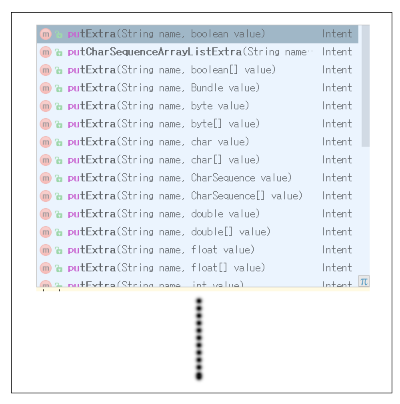 ▼ putExtra() 함수는 두 번째 인자에 대해서 여러 Type으로 오버로딩 되어 있습니다.