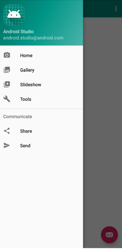 Lkt_Programmer 2019. 6. 5. 13:49내비게이션 드로어(Navigation Drawer)는 앱에서 사용 가능한 기능을 탐색할 수 있도록 Menu를 제공하는 화면입니다. 기본적으로 화면의 가장자리에 숨겨져 있으며 왼쪽에서 오른쪽으로 스와이프 동작을 수행하거나 App Bar의 아이콘을 클릭하여 화면에 표시할 수 있습니다.
