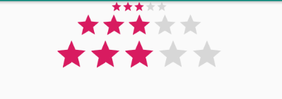▼ Xml 레이아웃 리소스를 통해 RatingBar 한 개를 배치한 형태입니다. isIndicator 속성값은 default로 false이기 때문에 사용자와의 터치 또는 드래그와 같은 상호작용을 통해 별 점수를 변경하는 것이 가능합니다. 또한 stepSize가 3으로 지정하였기 때문에 한 번의 터치 또는 드래그로 점수가 3점씩 변경됩니다.
